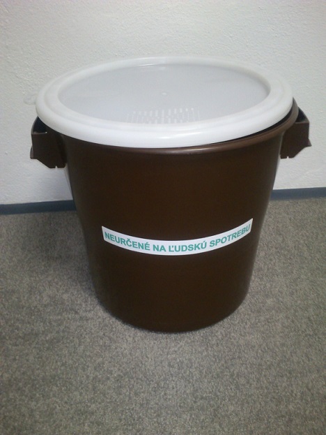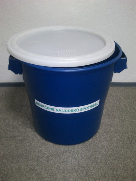 - Nádoby sú dodávané s plastovým vekom a sú označené nápisom "NEURČENÉ NA ĽUDSKÚ SPOTREBU".